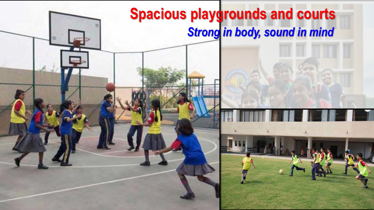 Basketball court, Football field, Volleyball court and a play area for the Tiny Tots of HAPPINEST.